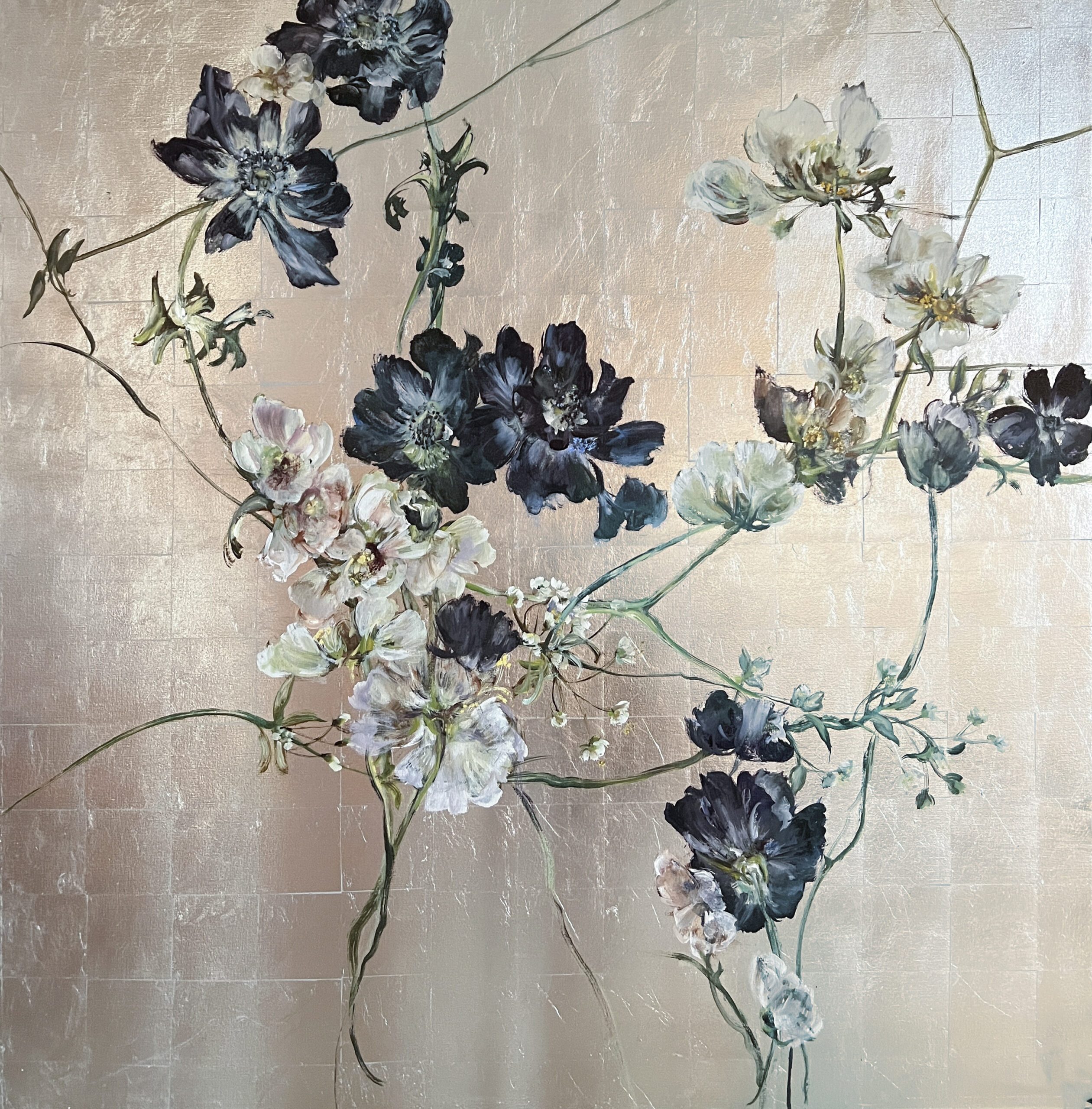 Huile sur toile, fond à la feuille d’aluminium.